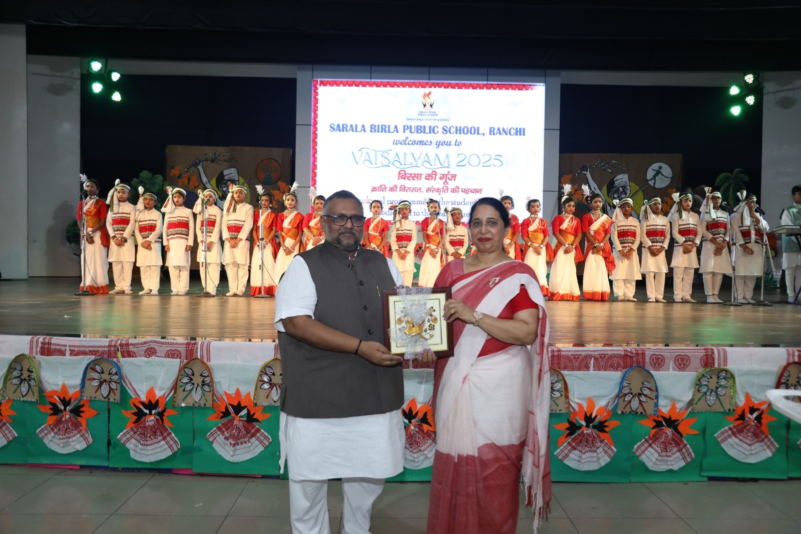 सरला बिरला पब्लिक स्कूल, रांची में ‘वात्सल्यम्- 2025 ग्रैण्डपैरेन्ट्स डे’ के अंतर्गत एक भव्य सांस्कृतिक कार्यक्रम ‘बिरसा की गूंज – क्रांति की विरासत, संस्कृति की पहचान’ शीर्षक से आयोजित किया गया। यह कार्यक्रम केजी-2 के नन्हें छात्रों द्वारा प्रस्तुत किया गया। इस आयोजन के माध्यम से भगवान बिरसा मुंडा की जीवनगाथा, उनके शौर्य और झारखंड की समृद्ध आदिवासी विरासत को श्रद्धांजलि अर्पित की गई। इस कार्यक्रम में डॉ. प्रदीप कुमार वर्मा, सांसद (राज्यसभा) प्रदेश महामं, भाजपा, झारखंड, प्रो. (डॉ.) गोपाल पाठक, महानिदेशक सरला बिरला विश्वविद्यालय, रांची, श्री कर्मवीर सिंह, प्रचारक, राष्ट्रीय स्वयंसेवक संघ, प्रदेश महामंत्री (संगठन), भारतीय जनता पार्टी, झारखण्ड, श्री मंटू, विभाग प्रचारक, राष्ट्रीय स्वयंसेवक संघ, रांची की गरिमामयी उपस्थिति रही। कार्यक्रम का शुभारंभ गर्मजोशी भरे स्वागत और दीप प्रज्वलन के साथ हुआ। एक मधुर स्वागत गीत और नृत्य ने वातावरण को उल्लास से भर दिया।इसके पश्चात विद्यार्थियों ने प्रभावशाली प्रस्तुतियों के माध्यम से श्रोताओं को इतिहास के पन्नों में ले जाते हुए बिरसा मुंडा के जीवन और उनके स्वतंत्रता संग्राम में योगदान की झलक दिखाई। केजी-2। के बच्चों ने झारखंड की पहचान- ‘सोल ऑफ द रेड सोइल‘ पर प्रस्तुति दी। केजी-2ठ के बच्चों ने भगवान बिरसा मुंडा के जन्म की कथा का मंचन किया। केजी-2ब् के नन्हें कलाकारों ने ‘ग्रीन ग्रेस द कर्मा टेल‘ नामक नृत्य नाटिका प्रस्तुत की। केजी-2क् ने ‘रूट्स ऑफ जॉय‘ के माध्यम से झारखंड के प्रमुख पर्व ‘सरहुल‘ की सांस्कृतिक झलक दिखाई। केजी-2म् की प्रस्तुति ने भगवान बिरसा मुंडा के बलिदान और उनकी अमिट विरासत को दर्शाया। केजी-2थ् के विद्यार्थियों ने ‘प्राइड ऑफ झारखंड‘ पर प्रस्तुति दी जिसमें राज्य के विकास और समृद्धि को दर्शाया गया। वन महोत्सव के अवसर पर प्रकृति माता को समर्पित एक विशेष नृत्य ने सभी दर्शकों को मंत्रमुग्ध कर दिया। प्रत्येक प्रस्तुति को साहस, एकता और सांस्कृतिक गौरव की भावना से खूबसूरती से कोरियोग्राफ किया गया था। कार्यक्रम का समापन धन्यवाद ज्ञापन और राष्ट्रीय गान के साथ हुआ।